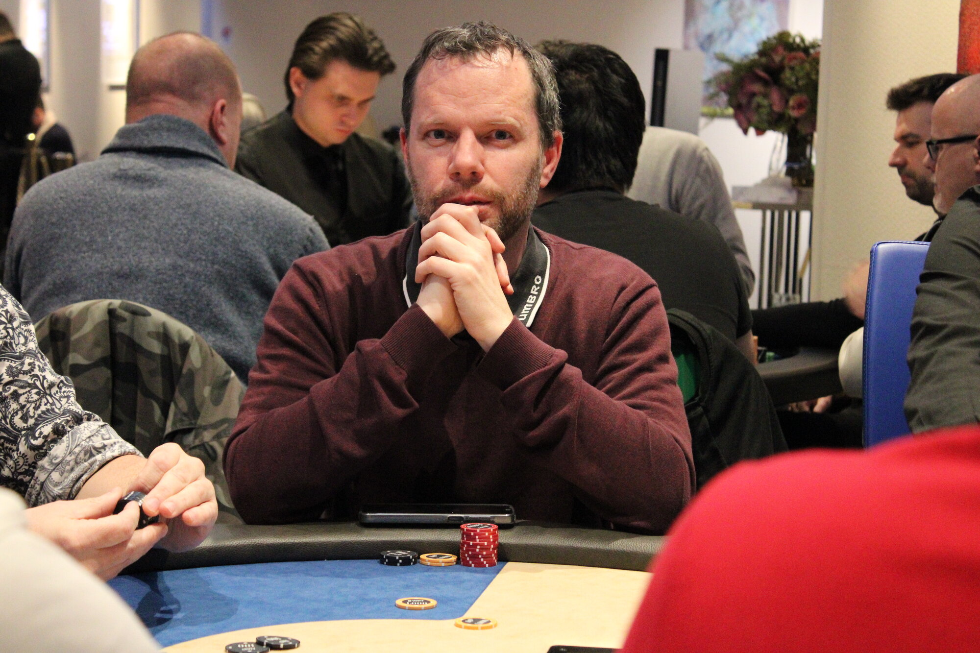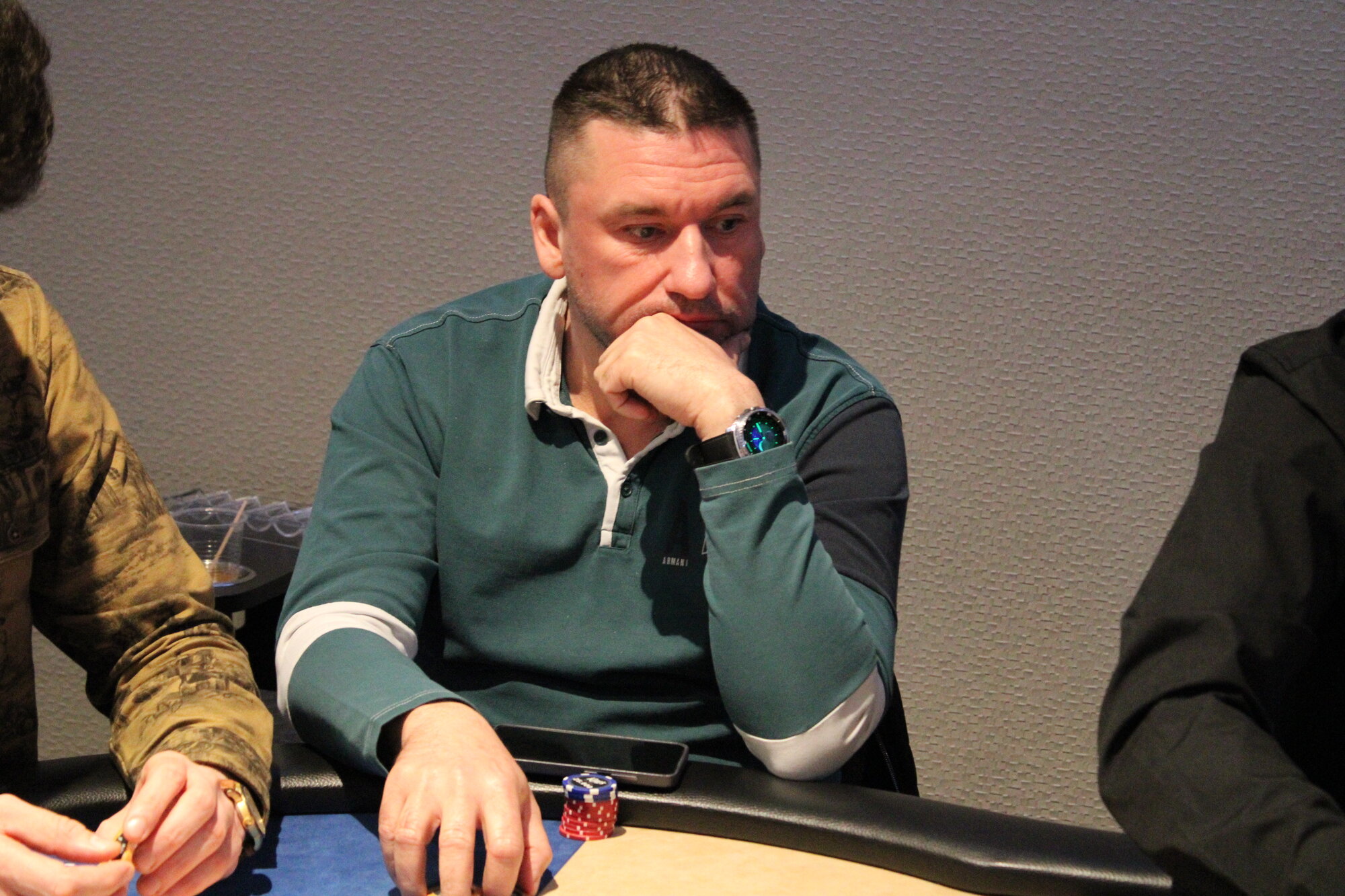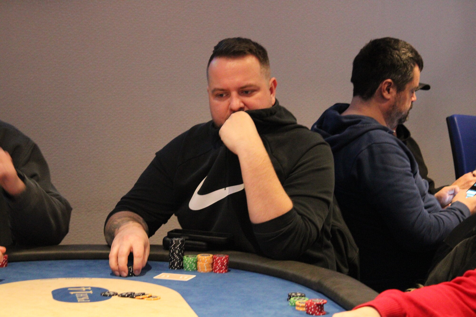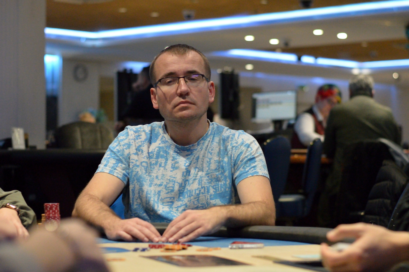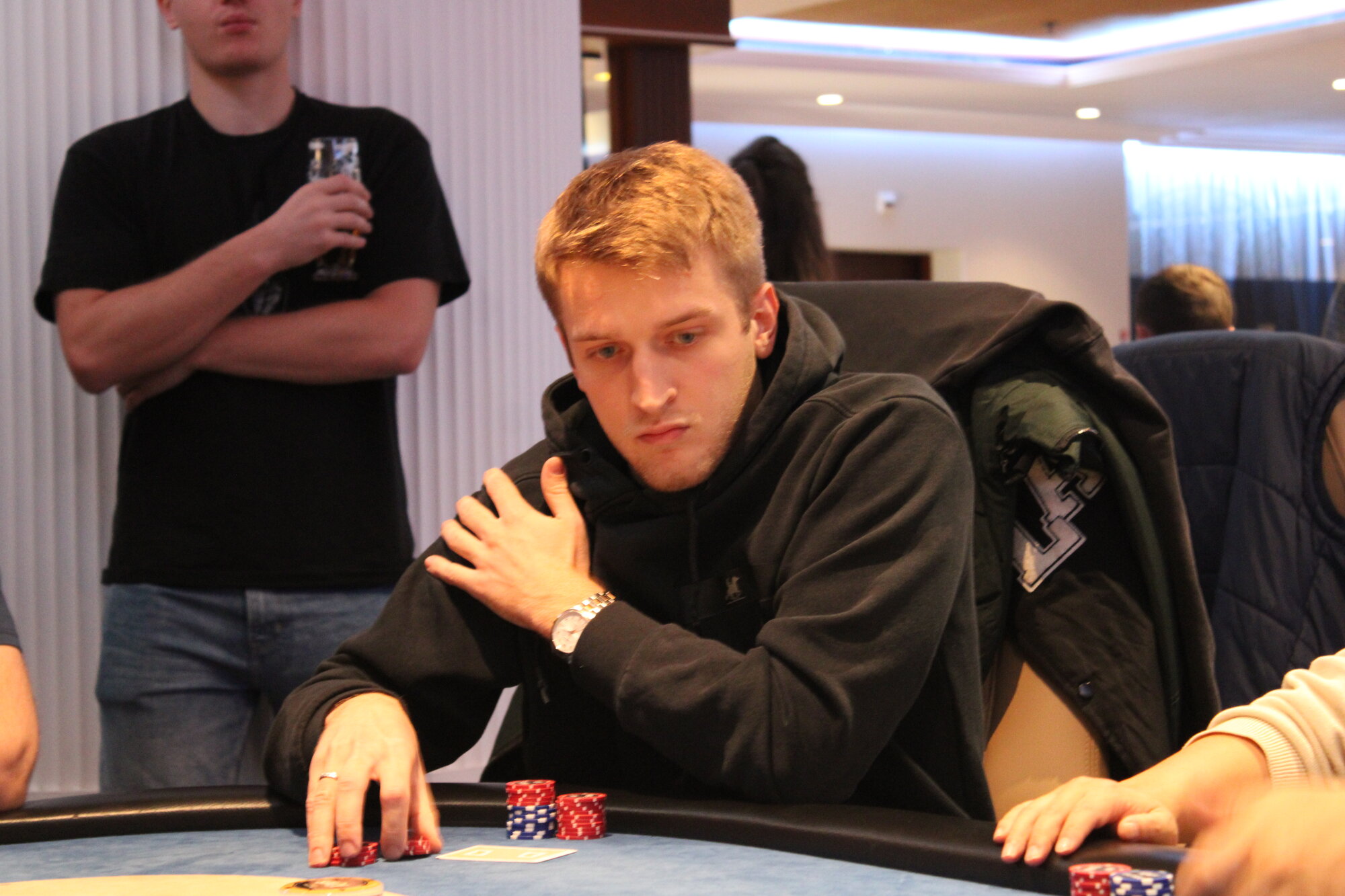Na flopu Maciej Jan Swicarz (BTN) v pozici betuje 6.6k do cca 17k potu, Karel Novotný (SB) dorovnává a Alexandr Jacko (CO) raisuje na 15.5k, Swicarz jde z cesty a Novotný znovu dorovnává.