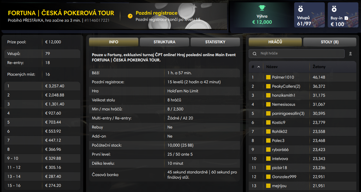 - Fortuna | ČPT Online poprvé v novém lobby! Jak si stojíš v leaderboardu?