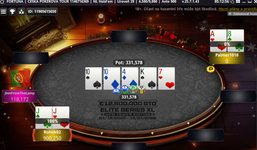 Vánoce jsou za dveřmi a kdo jiný se tak mohl stát šampionem prosincové České Pokerové Tour než hráč s avatarem Sanata Clause. Rohlík byl ke konci nezastavilný. Poslední tři soupeře pořešil velmi rychle a slaví titul šampiona!
