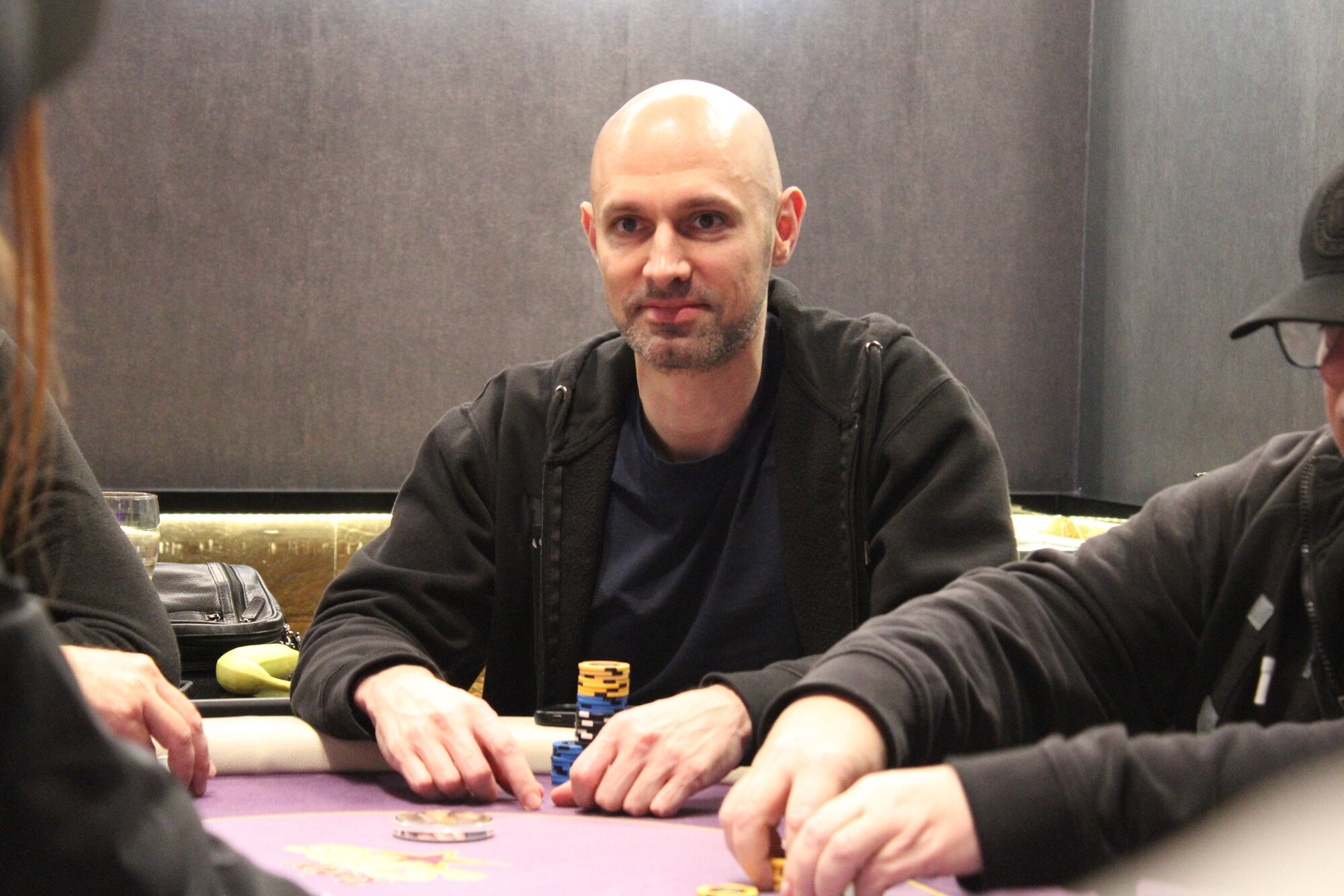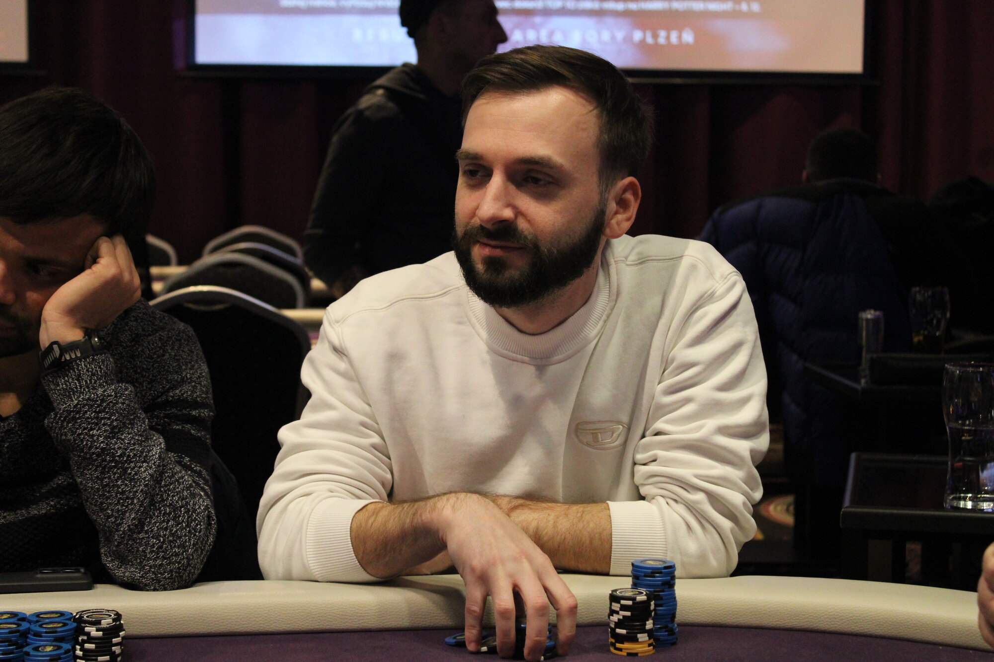 Norbert Lagron (UTG) open 2.3k, Radovan Kdýr (SB) a Jan Volkov (BB) dorovnávají.