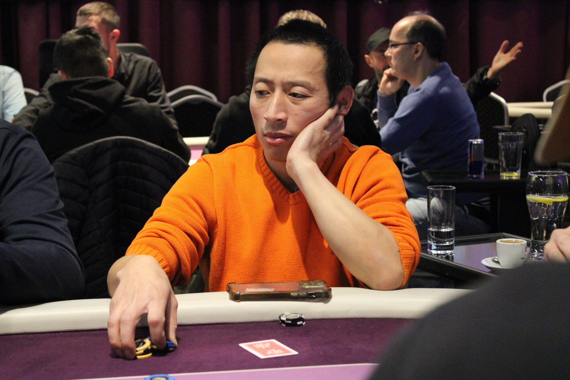 , po checku soupeřů, sbírá Zhang pot sázkou 500. Easy.