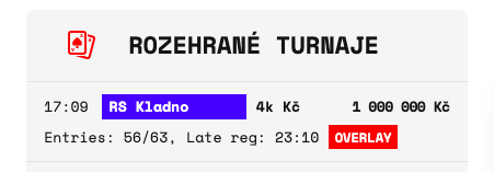 Pozdní registrace je tradičně otevřena do 23:10, do konce dvanáctého blind levelu. Zvyšující se počet entries a náběh na případný overlay můžete sledovat také v sekci "rozehrané turnaje" na našem webu.