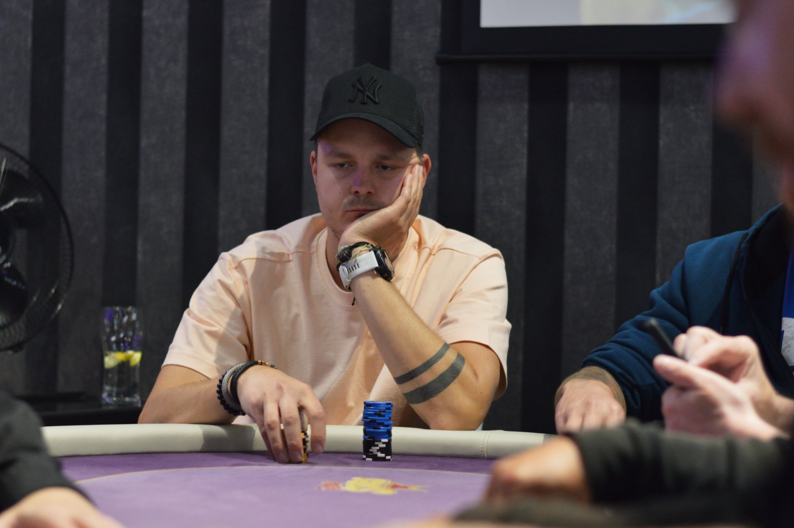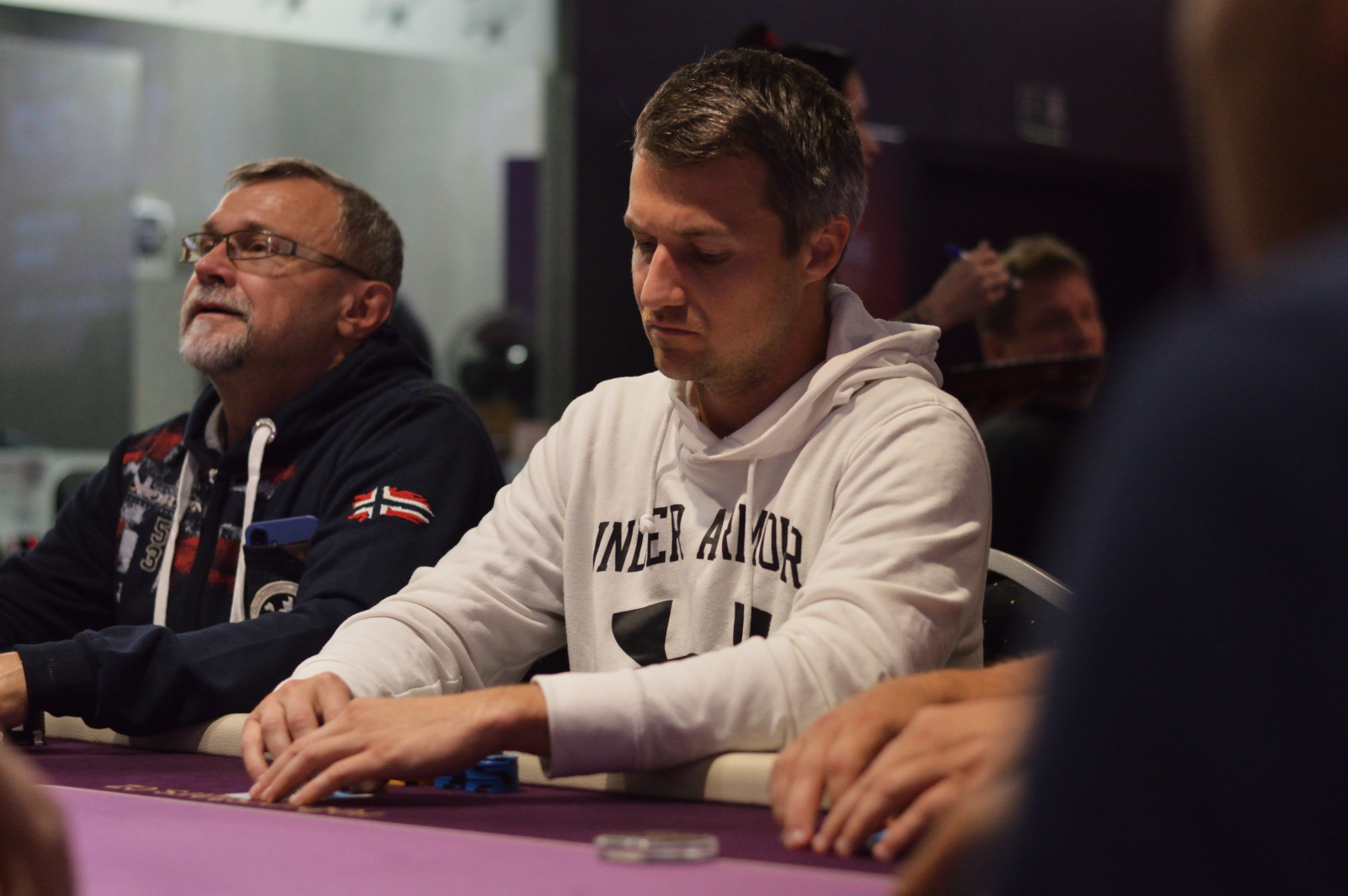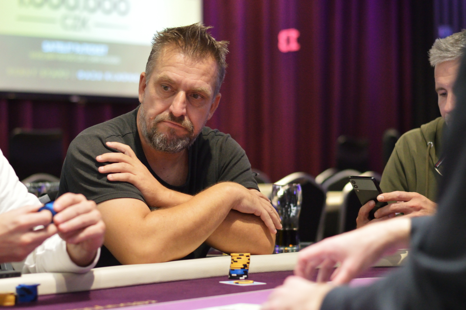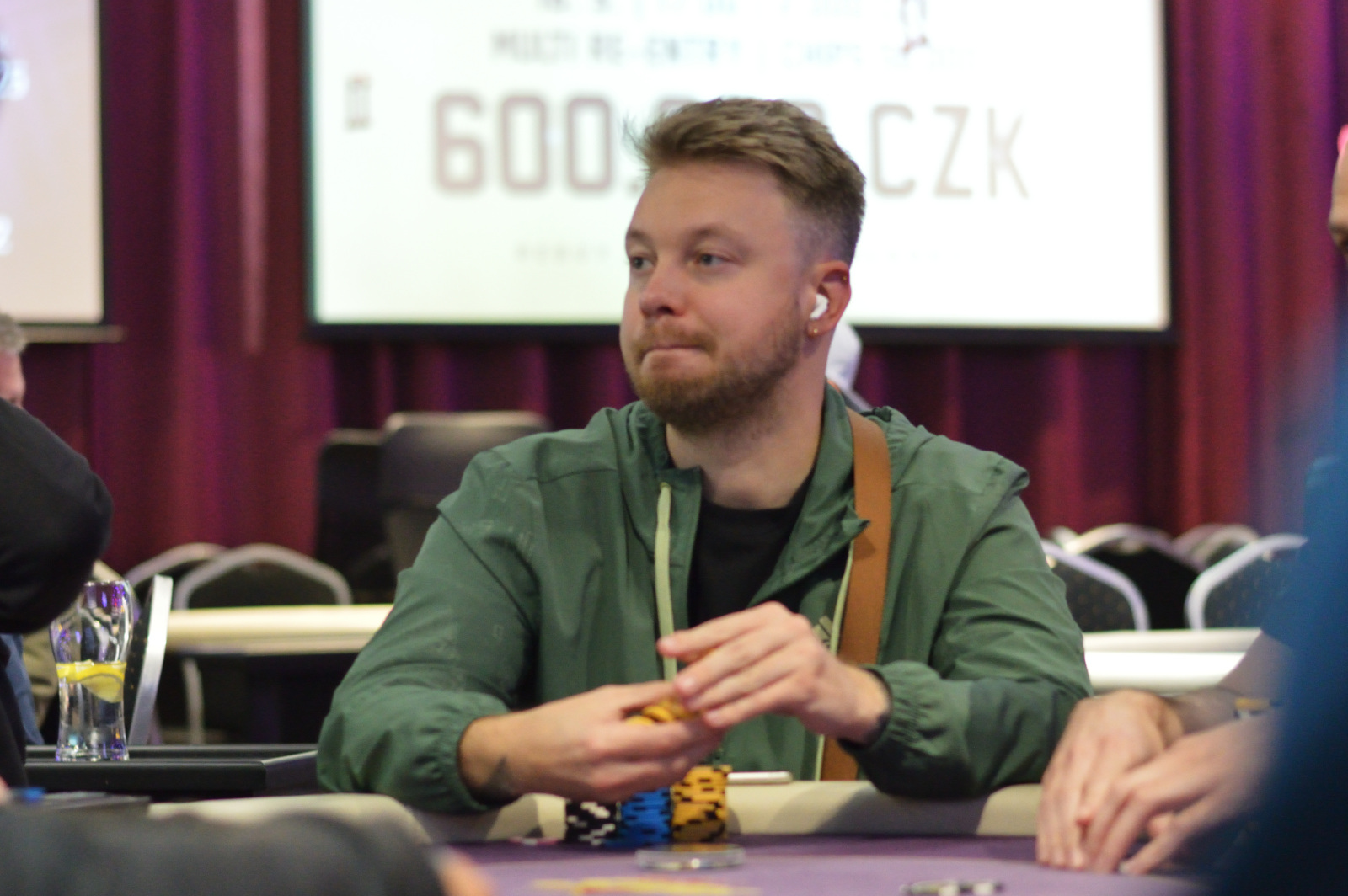 je pozadu a po hře padá na poslední tři blindy (300K).