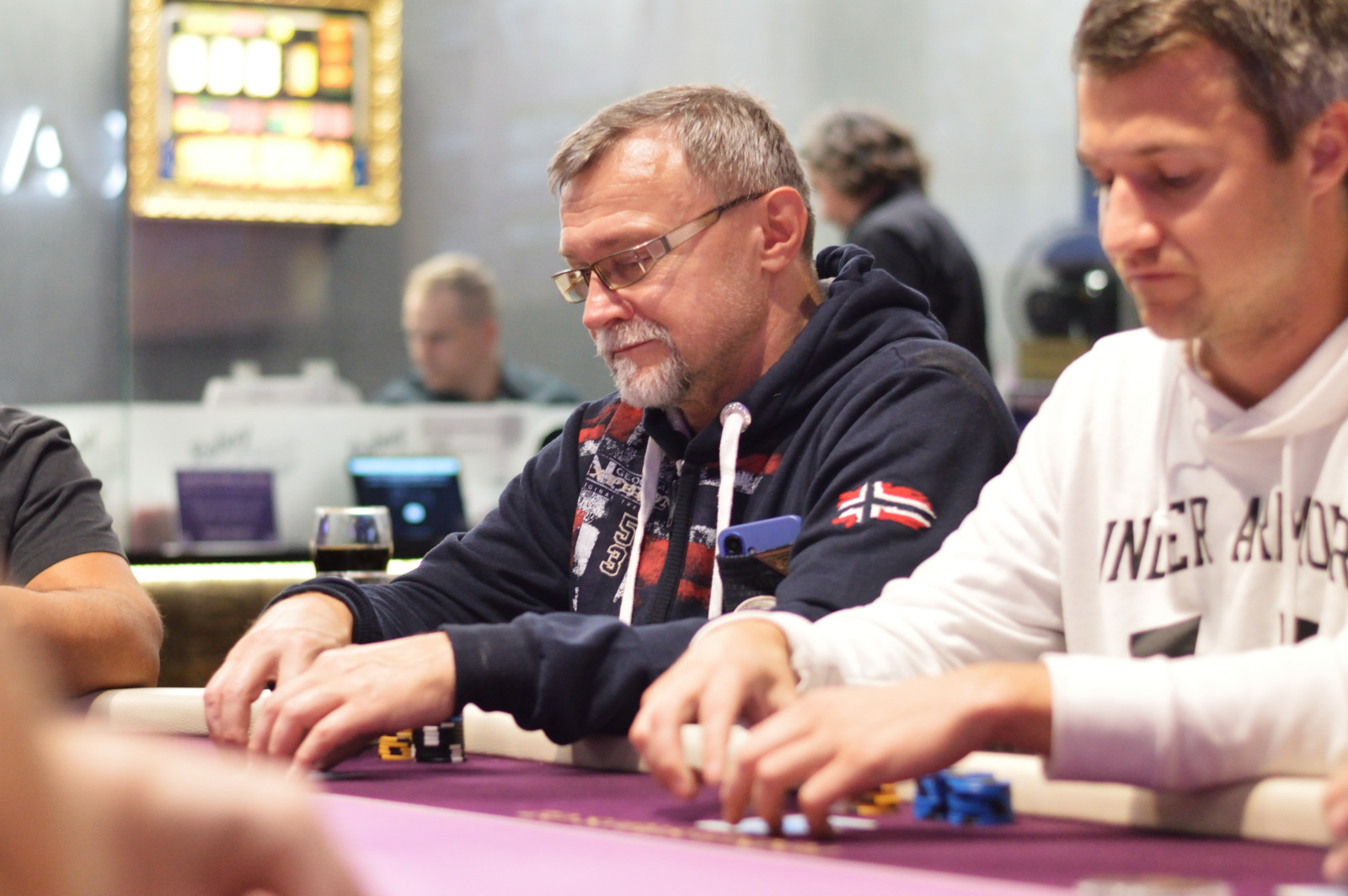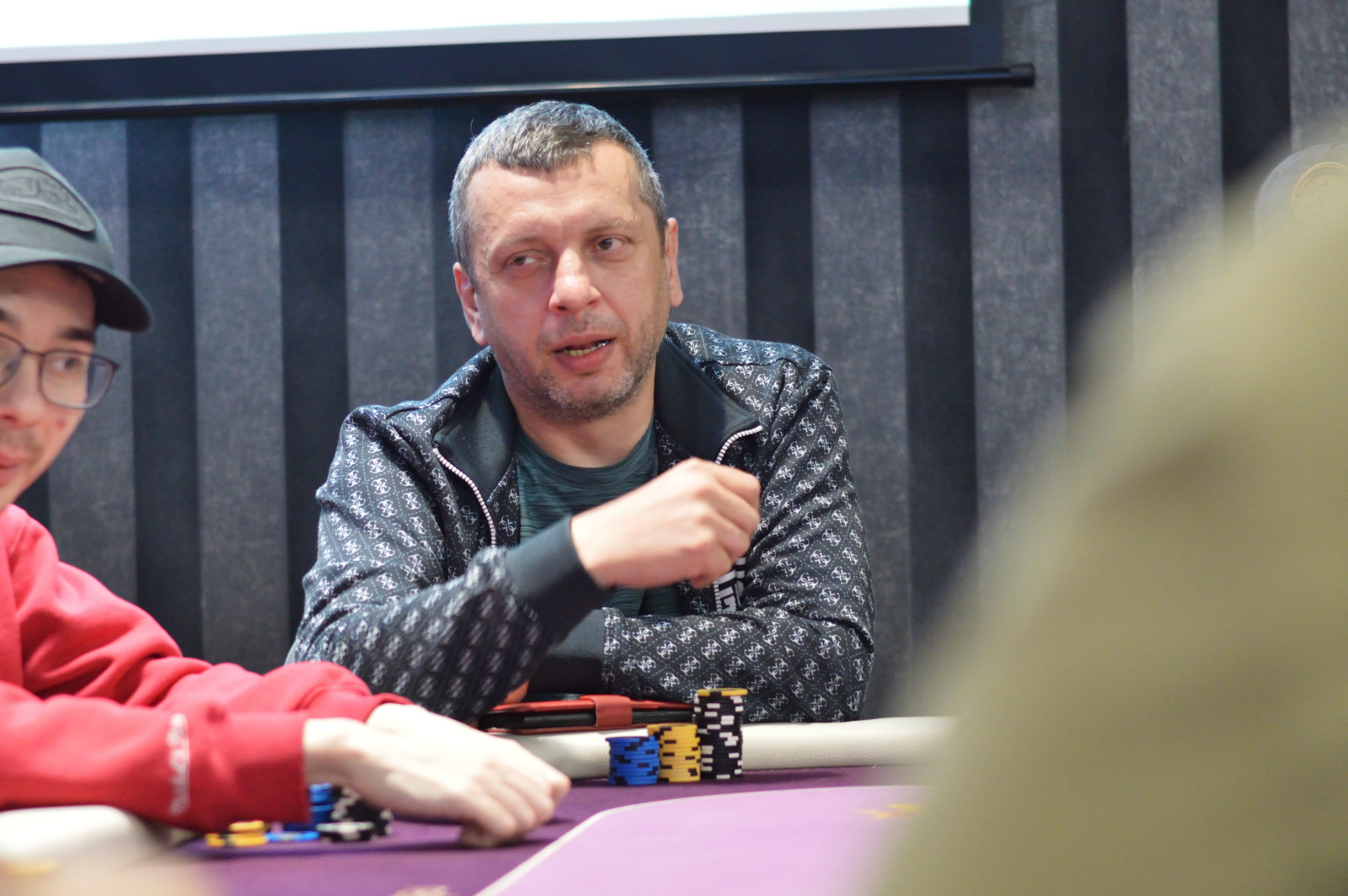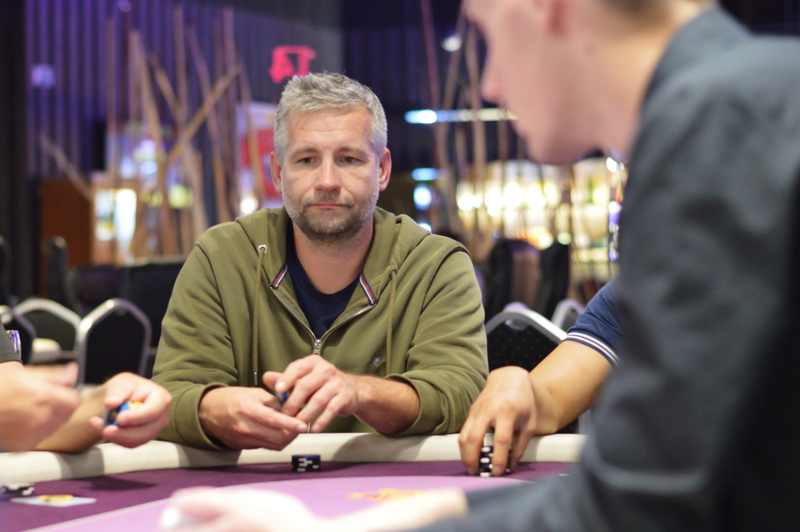 je pozadu a po hře padá na poslední tři blindy (300K).