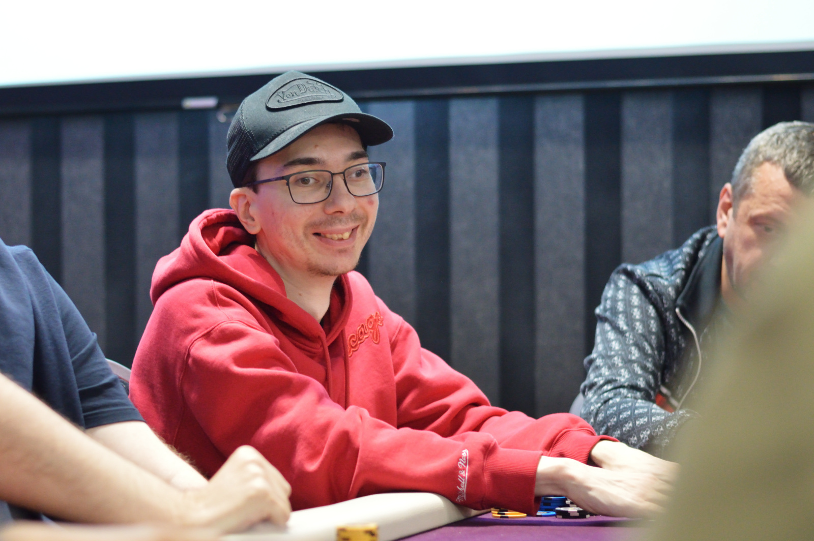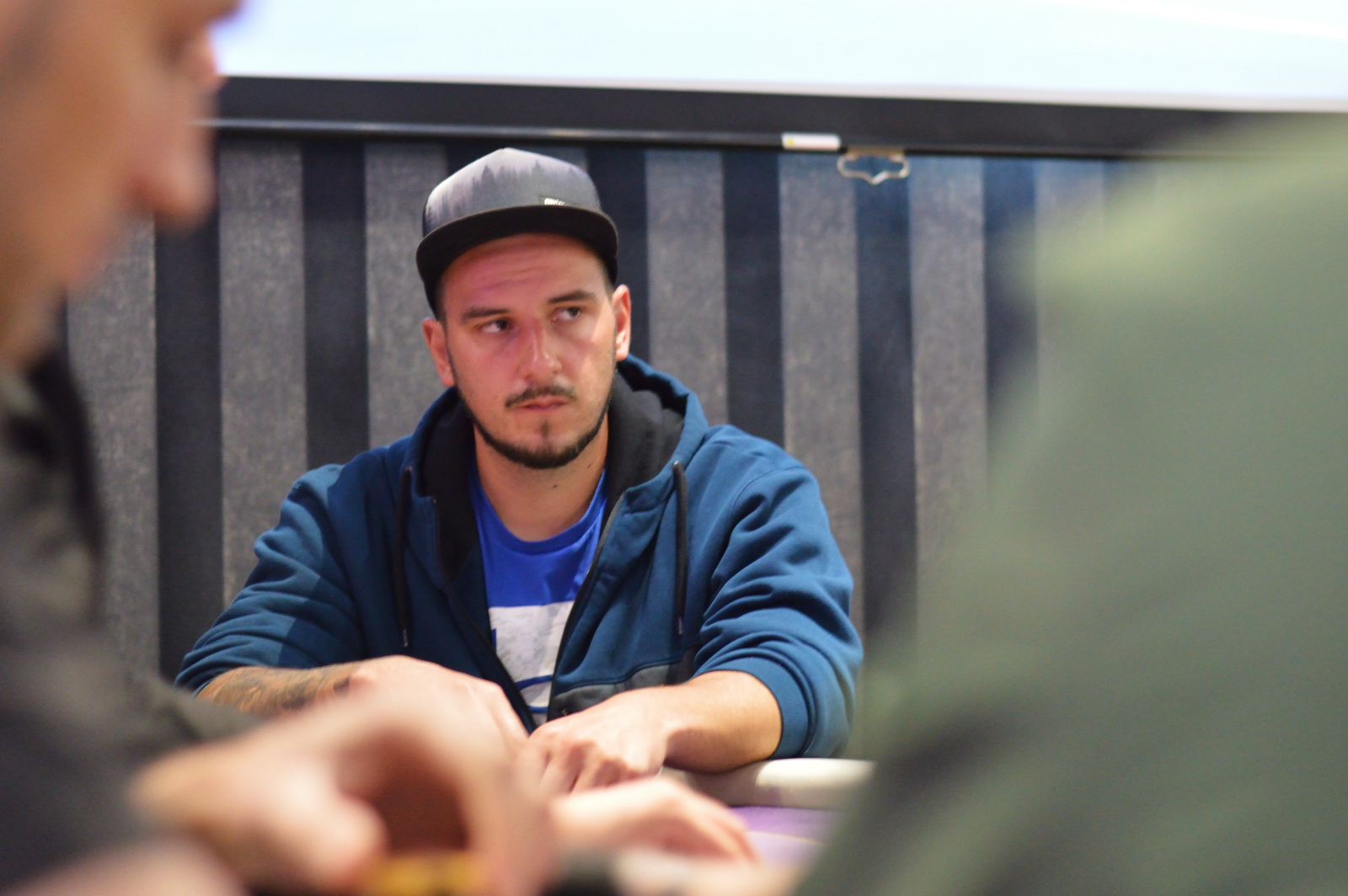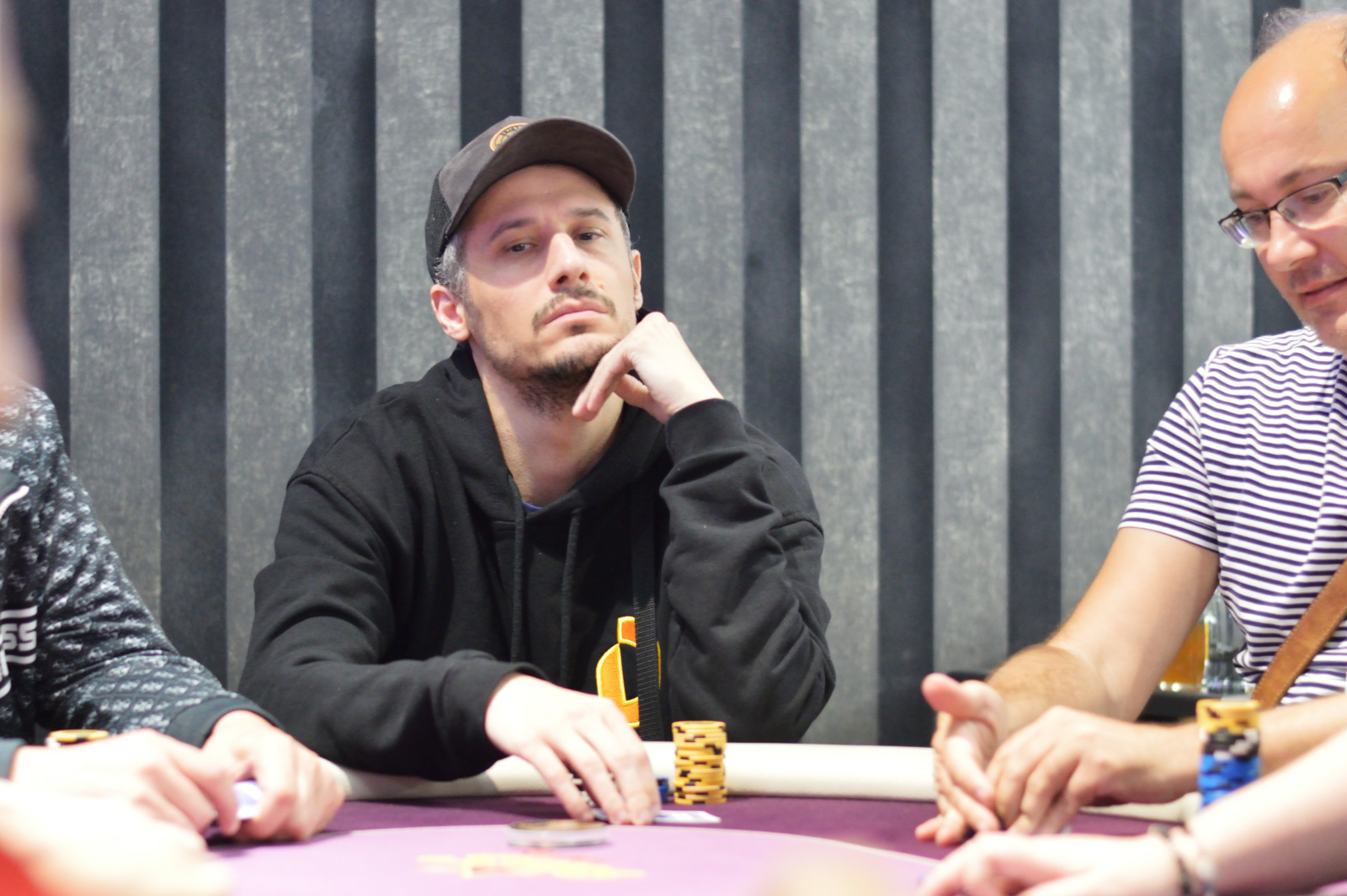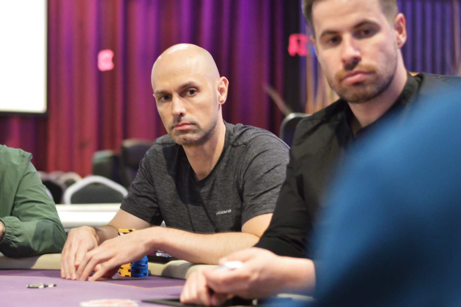 je pozadu a po hře padá na poslední tři blindy (300K).