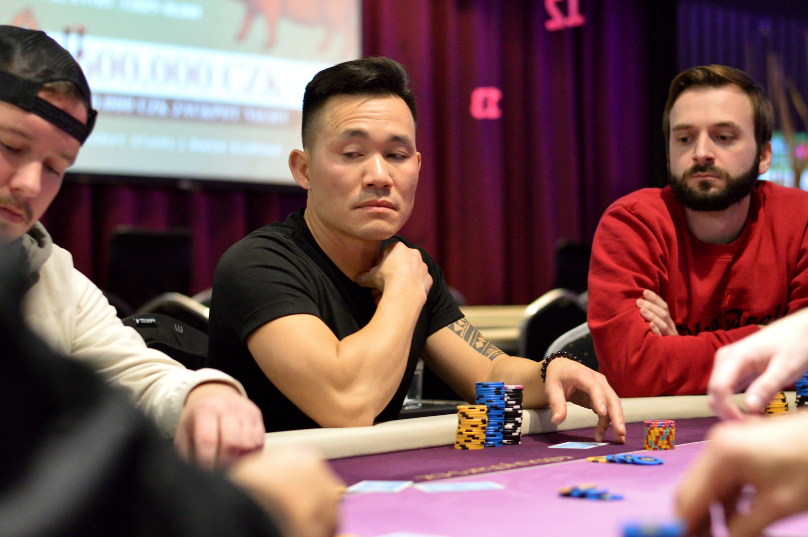 leadne Erwin Wiechers (SB) 1.500, Valerii Kalynych (BB) fold, ale Petr Říha (MP) i Dominik Báša (MP1) call.