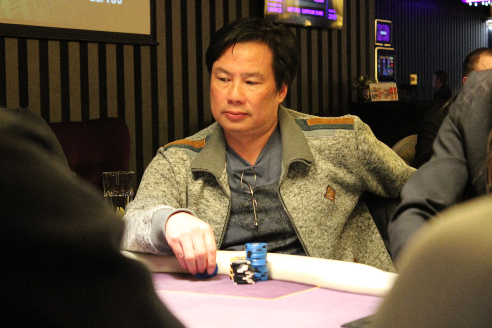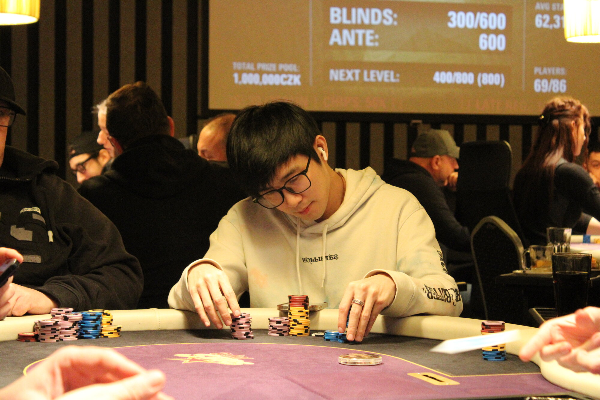 Pavel G (UTG) shoveuje své 2bb, Li Zichaio (BTN) a David Eiselt (BB) callují.