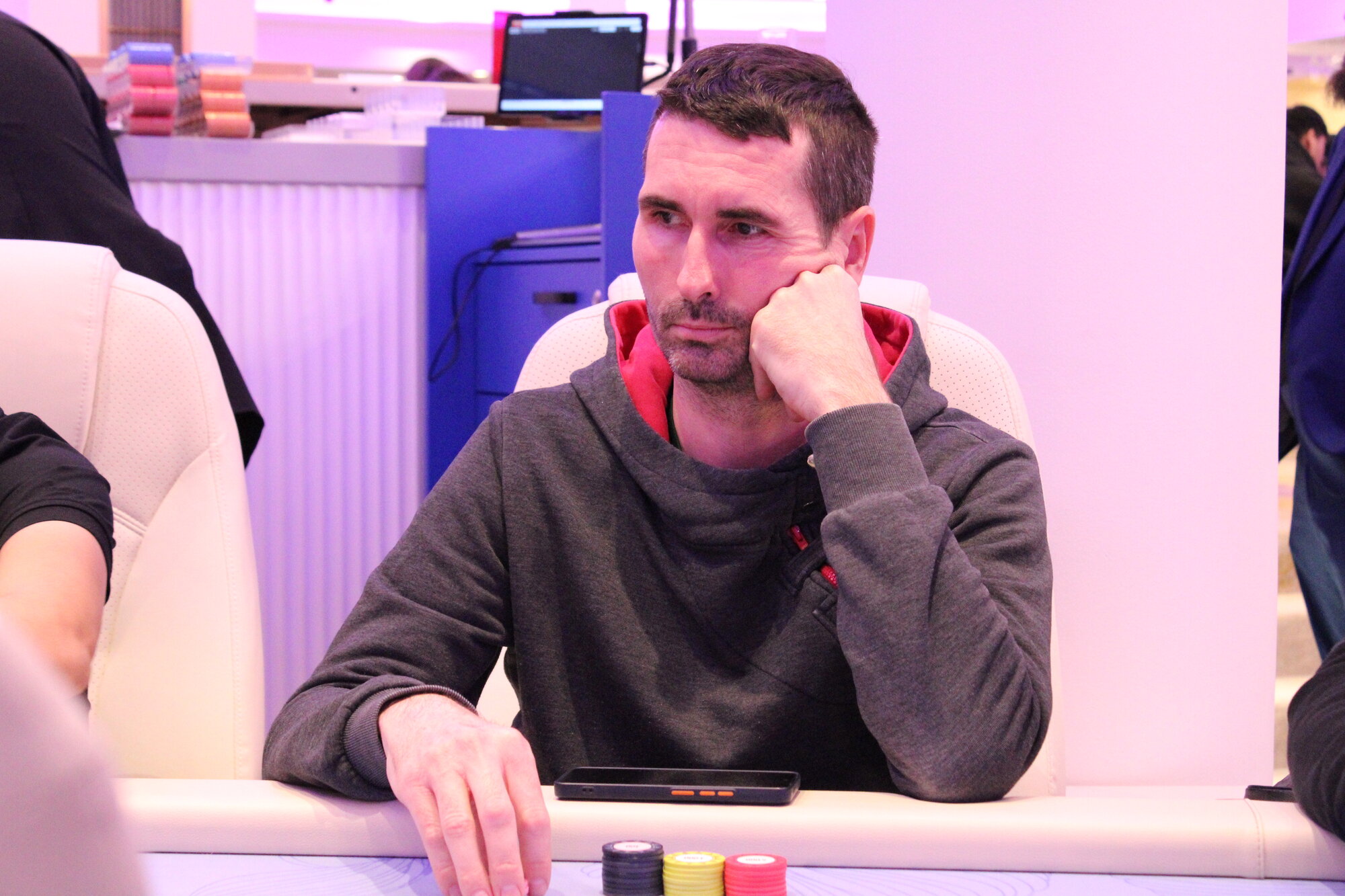 V další handě posílá Hoclár do open raisu 1.2k od GK svých 3.1k, dorovnává Anonym a původní agresor GK.