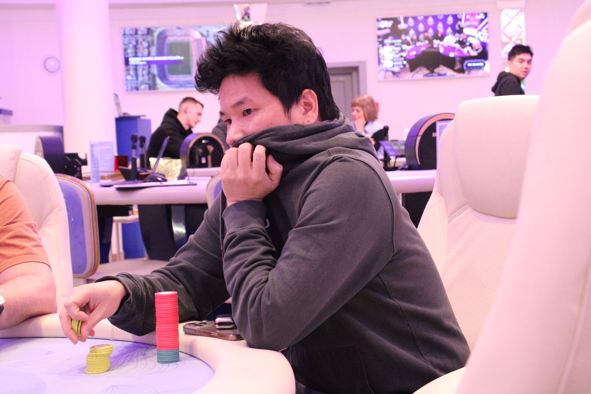 Na turnu se Nguyenovi otevírá flush draw, která se ale nekompletuje a je tak out na 3. místě.