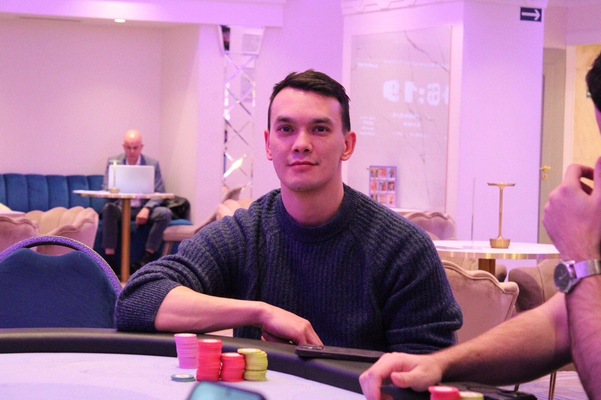 Yurii Rak (UTG) hlásí allin 245k, Quang Nguyen (BB) dovírá.