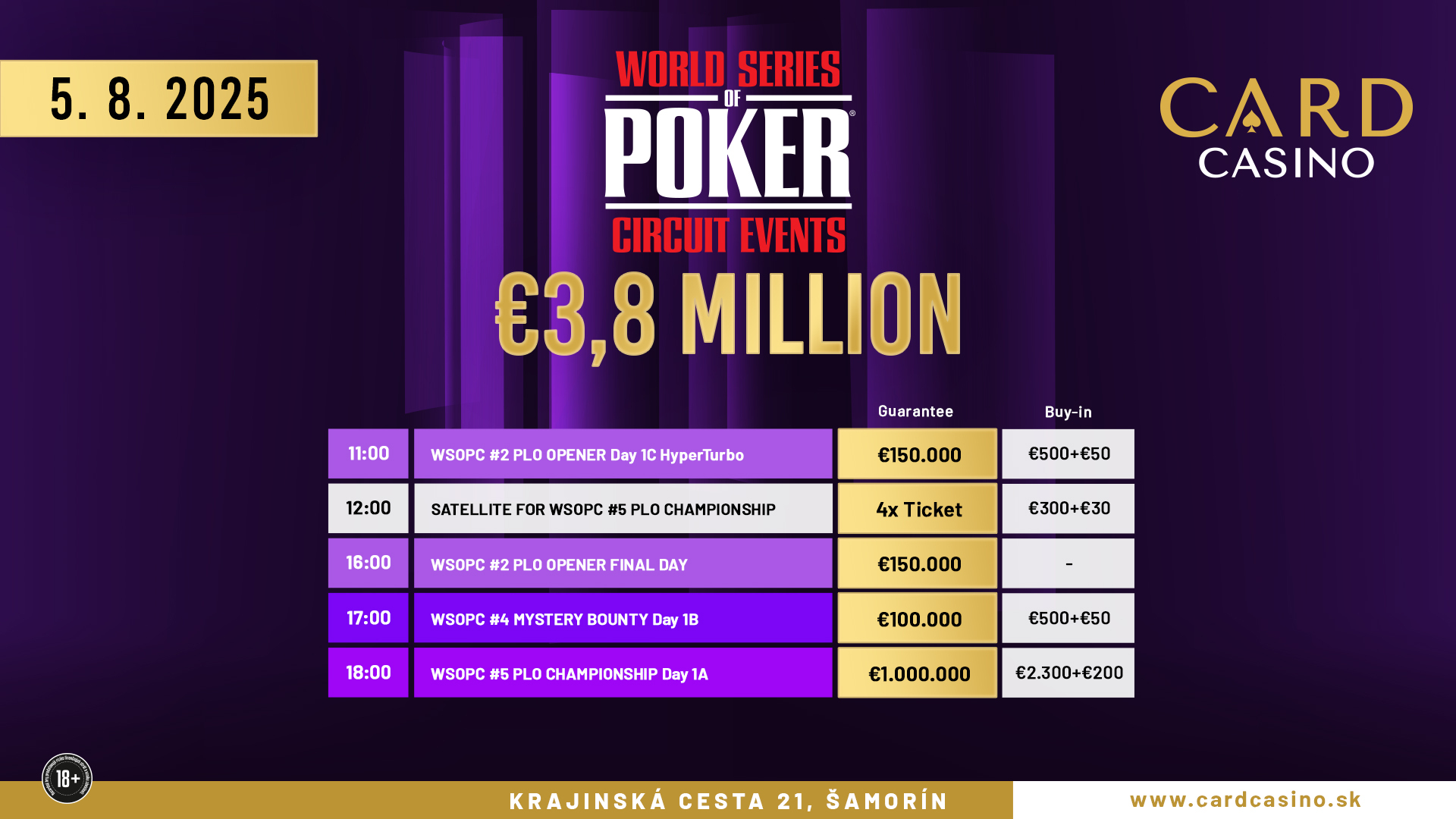 - Garance €3,8M! WSOP Circuit v Šamoríně se rozehraje už 1. srpna!