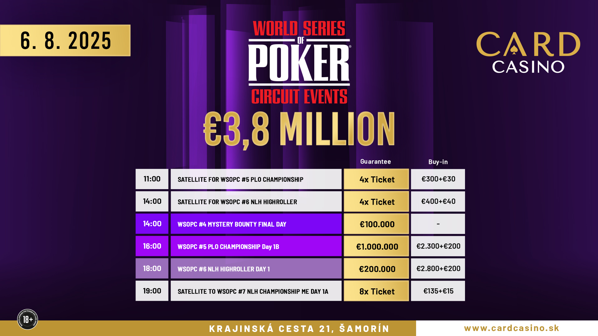 - Garance €3,8M! WSOP Circuit v Šamoríně se rozehraje už 1. srpna!