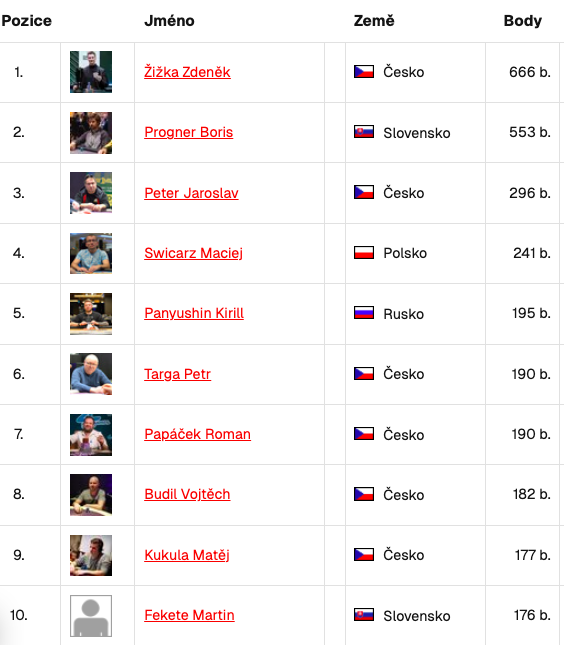 Výběr nejbližších turnajů spadajících do POY leaderboardu:
