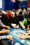Během tří her jsme slyšeli třikrát seat open na stole č. 10. Úřaduje tu Lukáš "Paštika" Dydek. Vytočil K-K do A-Q, A-Q do T-T a A-9 do J-8 shorta. Tři hráči jsou na cestě domů a Lukáš má o 150.000 víc.15:06 - Blindy