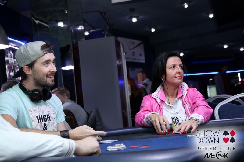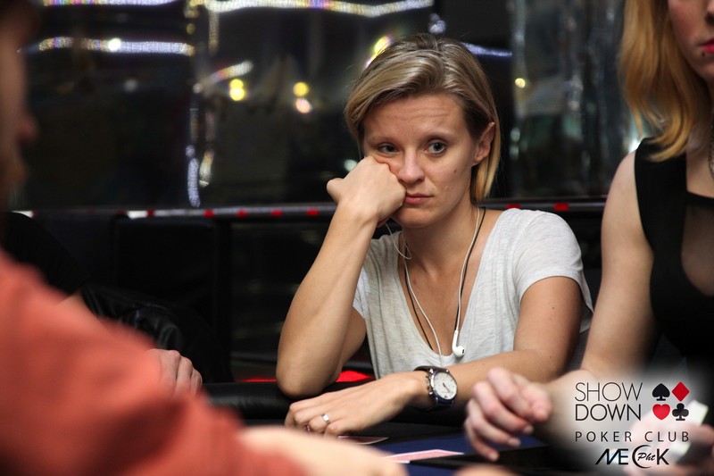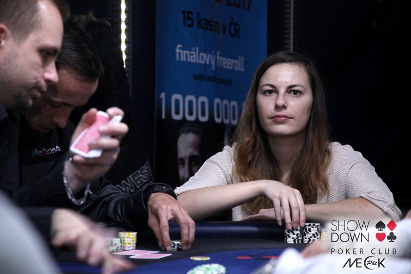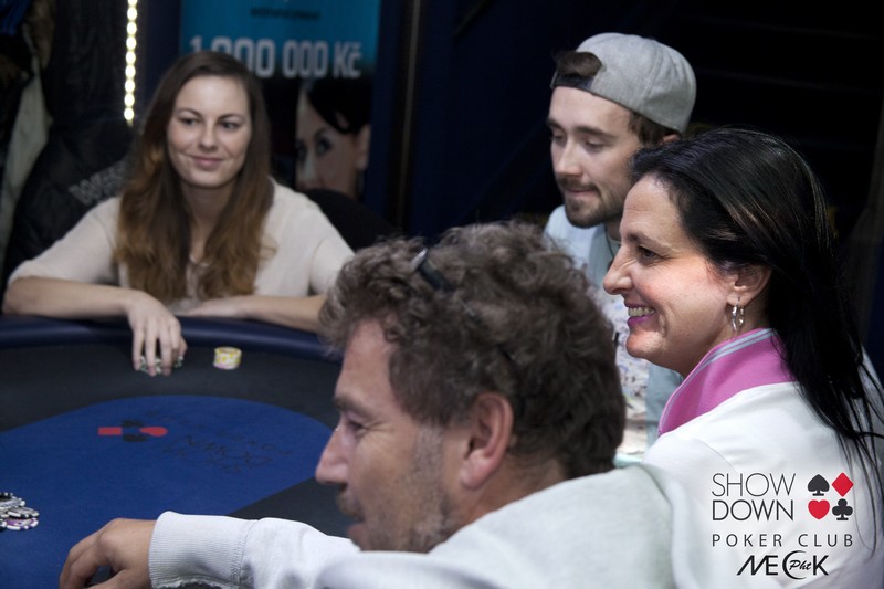 V závěrečné sehrávce tměř desetihodinového měření sil za pokerovými stoly Showdownu, otevřel David button raisem 90K, Helena zadefendovala big blind a na flopu Q