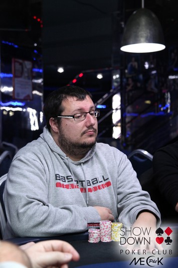 Na turnaj dorazil i Michal Kavalčík, který jak jistě všichni z bulváru víte, své alter ego Rudu z Ostravy už uložil k ledu. Zatím se mu v rámci možností daří na výbornou a starting stack rozmnožil na 30K i díky split potu na boardu 9-T-8-5-7, kde jak on, tak soupeř drželi na ruce jacka.