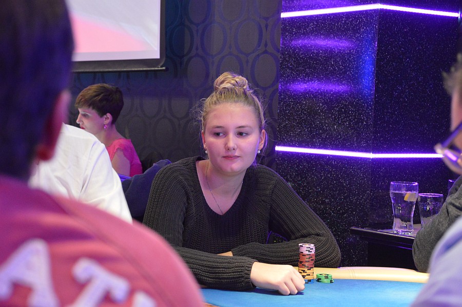Ve flightu 1D už zbývají jen poslední dvě hráčky - na big stacku sedící Adéla Tunová a se shortem bojující Lenka Škochová, která svých 11K vyslala do hry s 2 2
