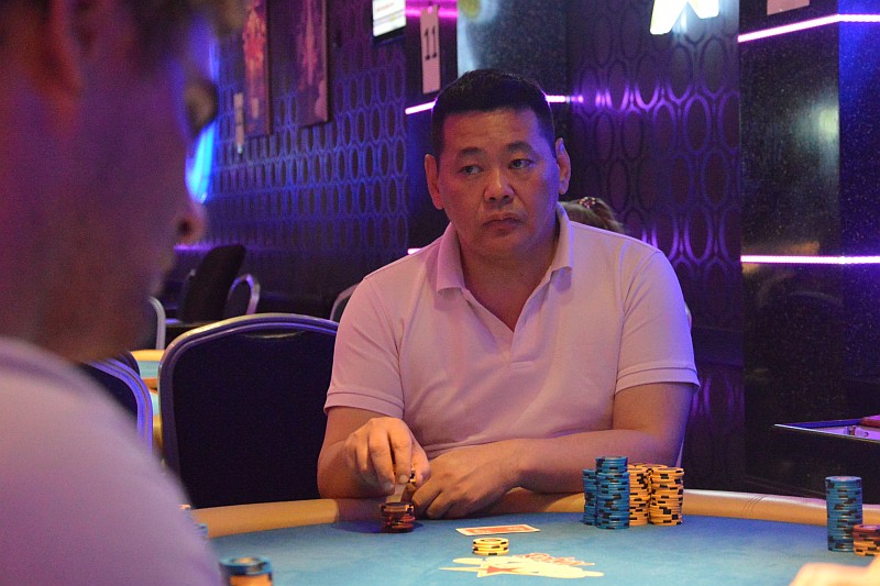 Vše odstartuje mladý Asiat raisem UTG na 1.300. Jiří Hvězda st. odpoví 3-betem z buttonu na 3.900 a Michal Hamáček sedící na small blindu reaguje 4-betem 45K. Za čarou si nechá jen drobné.